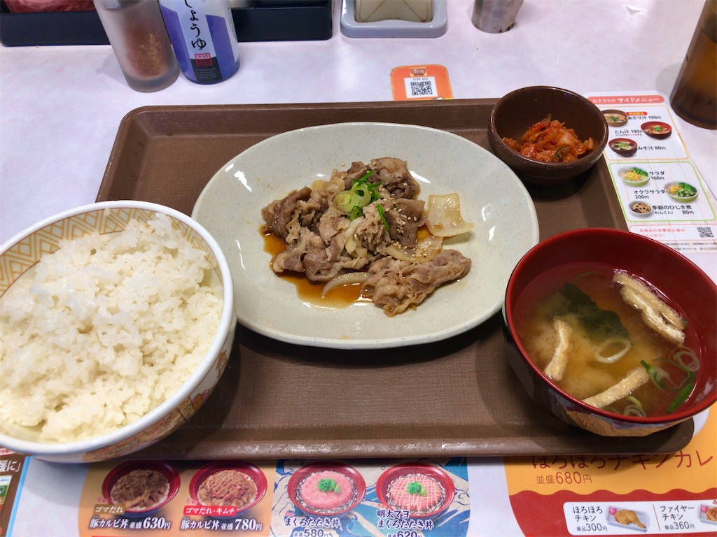 すき家の牛カルビ定食を食べてみた @幕張 すき家 - 外ごはん家ごはん。