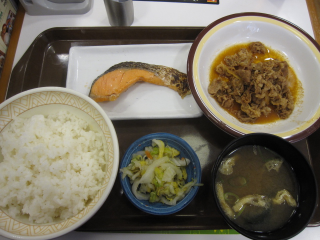 5 7夜勤明け 牛皿・鮭朝定食¥530@すき家 : 無駄遣いな日々。