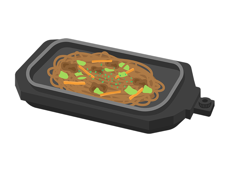ホットプレートで作った焼きそばの無料イラストイラストセンタ。
