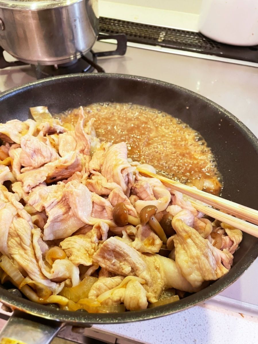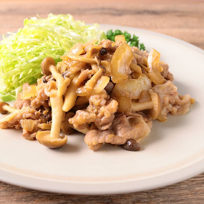 豚こま 玉ねぎ しめじ 生姜焼き (401 無料画像)