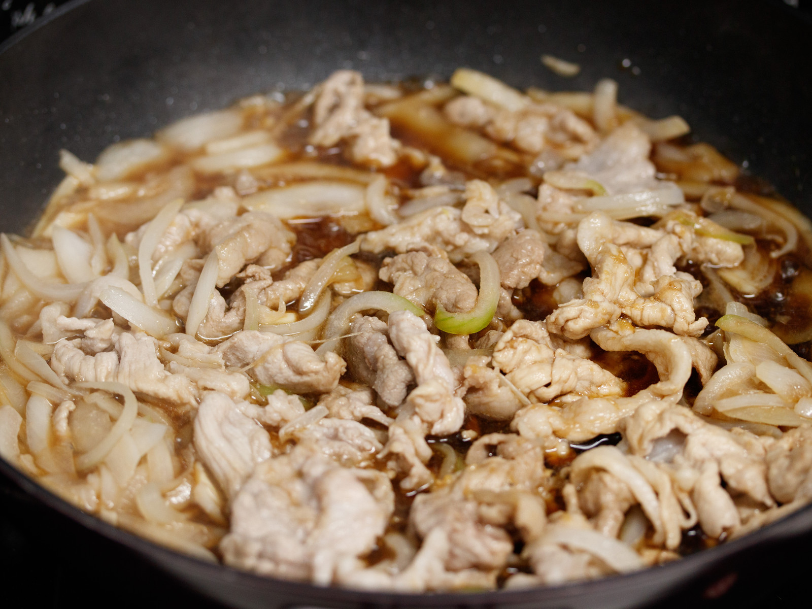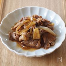 砂糖を使わない豚コマと玉ねぎの生姜焼き。