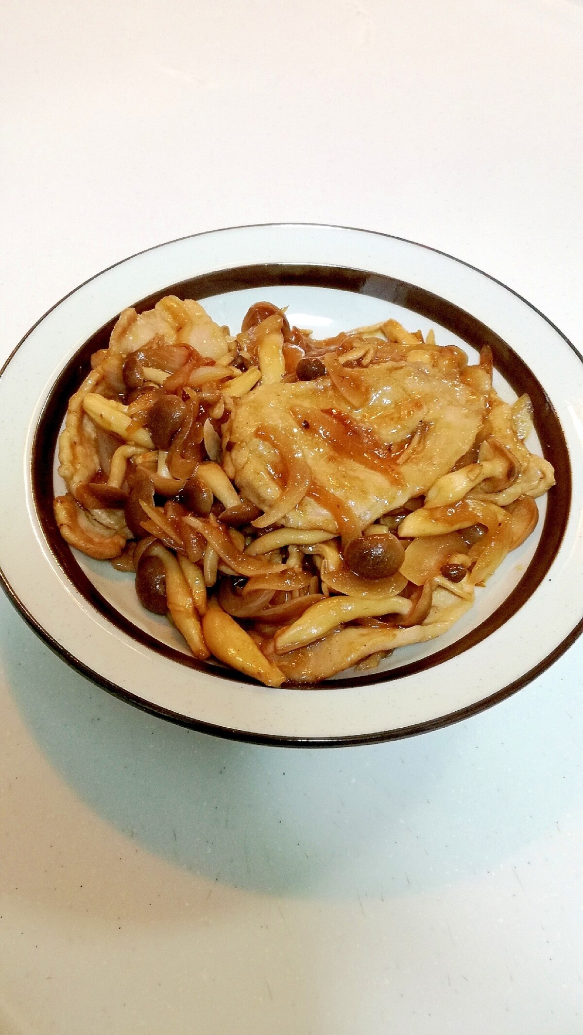 豚こまと玉ねぎ、ぶなしめじの生姜焼き。