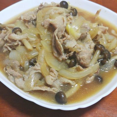 ノンオイルでヘルシー☆しめじ玉ねぎ&豚の生姜焼き。