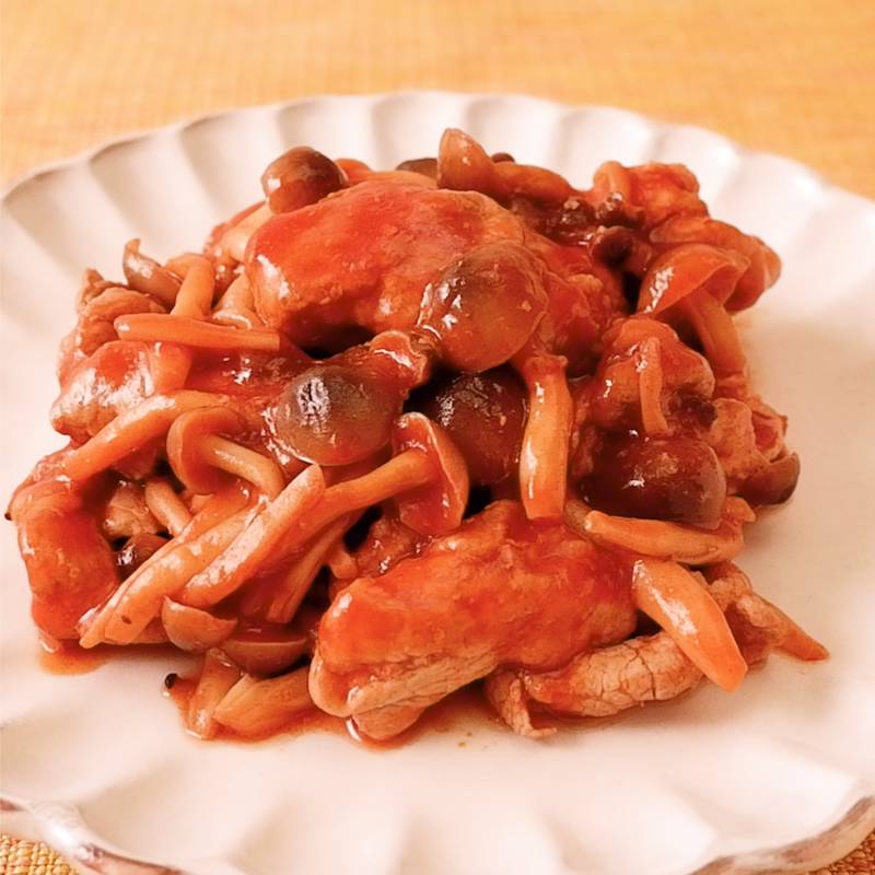 こってり濃厚! 豚こまとしめじの甘酢炒め。