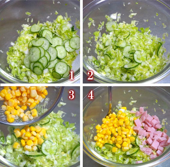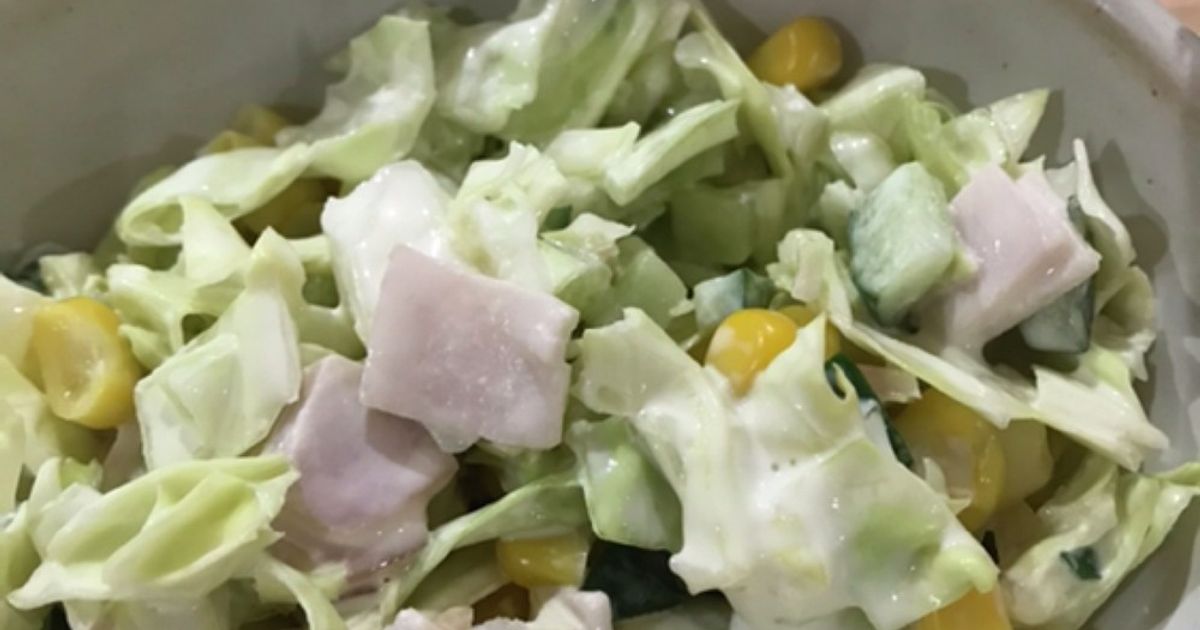 手づくりドレッシングで♪「キャベツとハムのコールスローサラダ」レシピ。