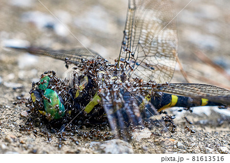 トンボ オニヤンマ の死骸を捕食するアリの写真素材81613516- PIXTA。
