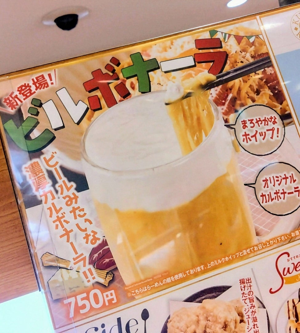 見た目はビール?なパスタに脳がバグる くら寿司の「ビルボナーラ」食べてみた - ライブドアニュース。