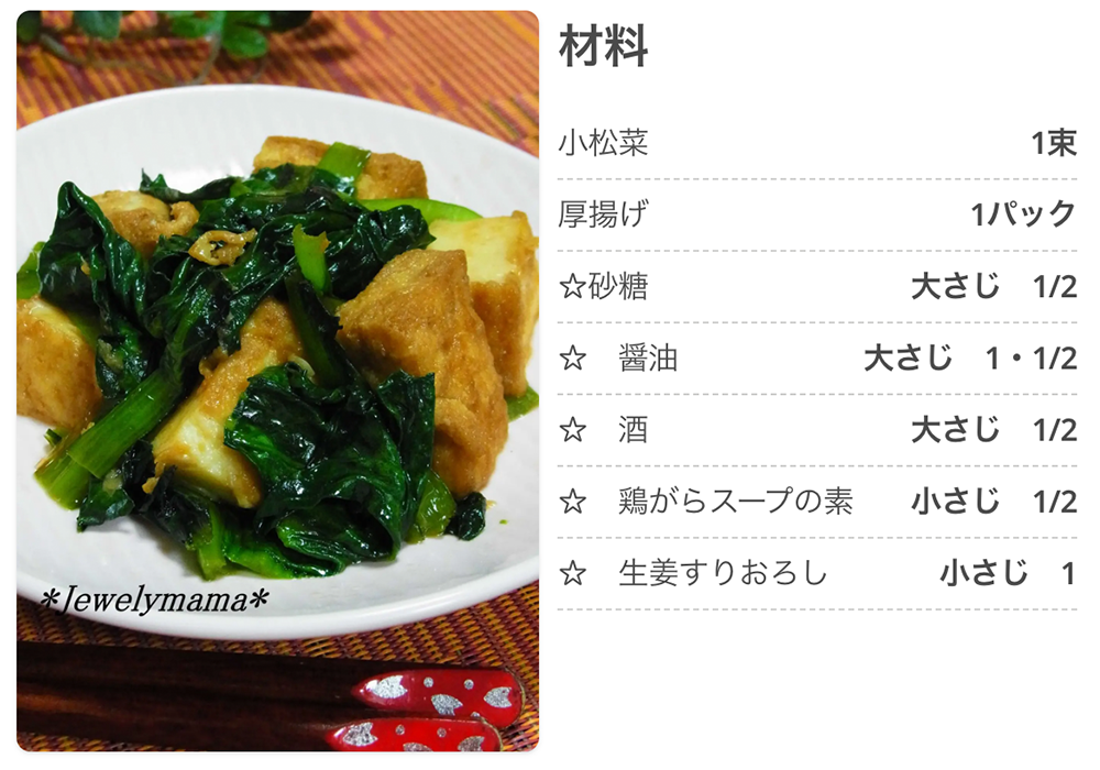 つくれぽ1000小松菜レシピ人気1位~40位の殿堂入りをおひたし・煮びたし・ナムルから油揚げ・豚肉・卵・厚揚げを使うレシピまで紹介クーカイ-Cookai。