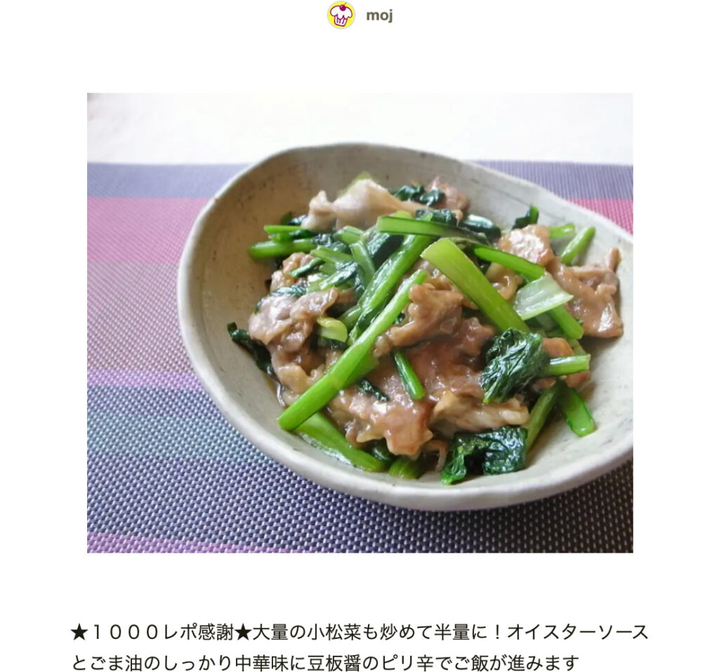 小松菜レシピ 人気1位・殿堂入り 簡単にサッと作れる,炒め物だけやない,ナムルやお浸しお弁当もつくれぽ1000越え夕食のおかず.com。