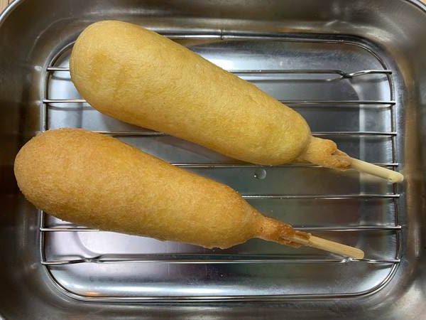 おやつの定番 冷凍アメリカンドッグをノンフライヤーで揚げてみた 設定温度と時間。