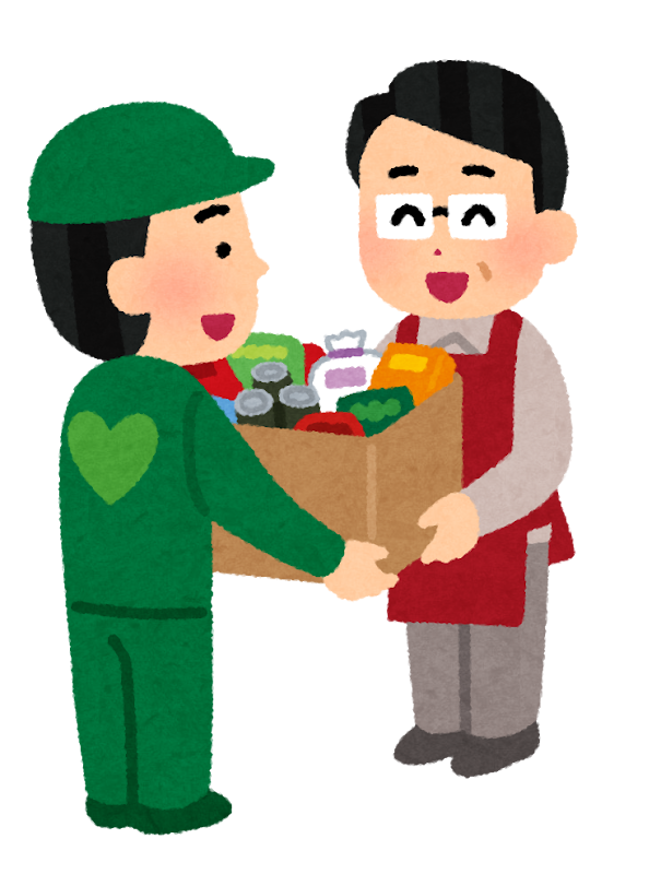 フードバンクへ食品を寄付する人のイラストかわいいフリー素材集 いらすとや。