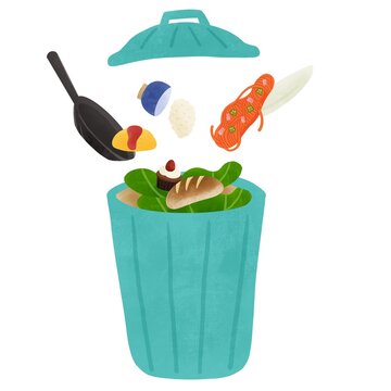 生ごみとゴミ箱のフードロスのイラスト 素材庫向量圖Adobe Stock。