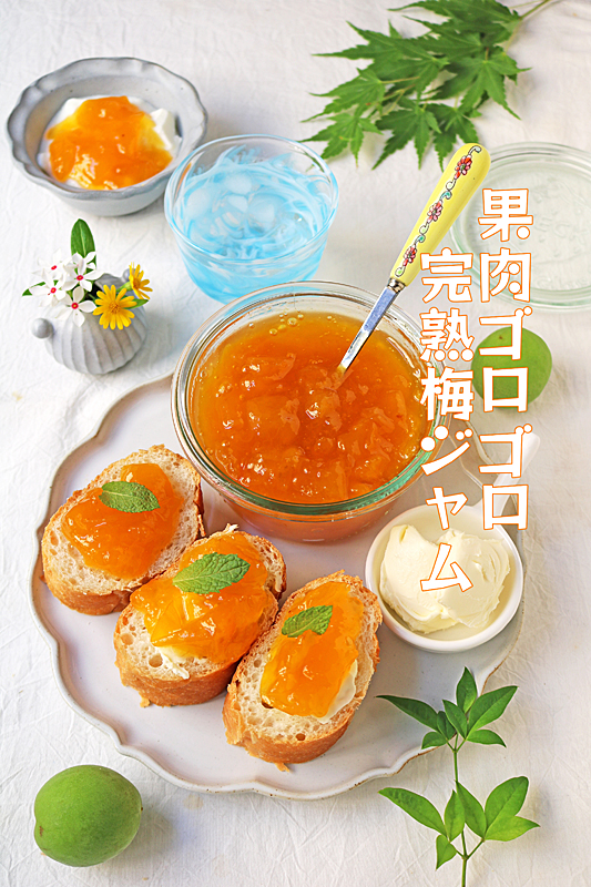 果肉感たっぷりの梅ジャムのレシピ 作り方:白ごはん.com。