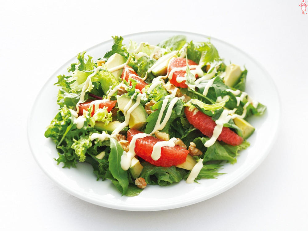 ベビーリーフとアボカドのグレープフルーツサラダレシピエスビー食品株式会社。