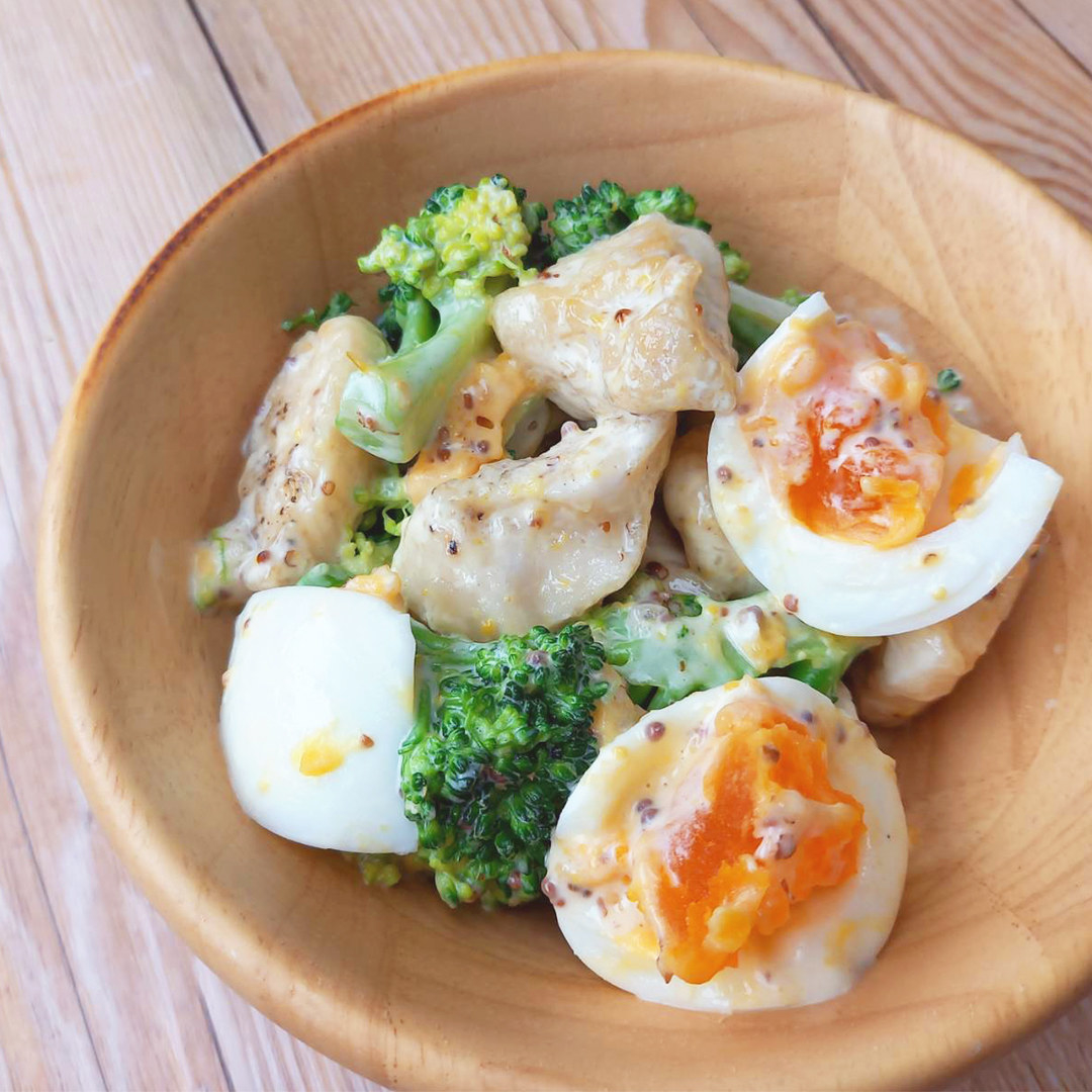 鶏むね肉とブロッコリーのマスタードマヨ炒め。