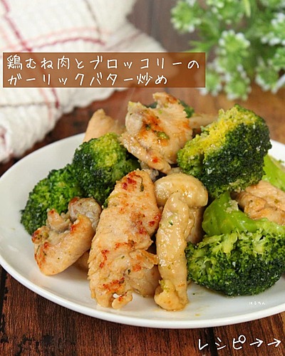 コクうま! 鶏むね肉とブロッコリーのガリバタ炒め。