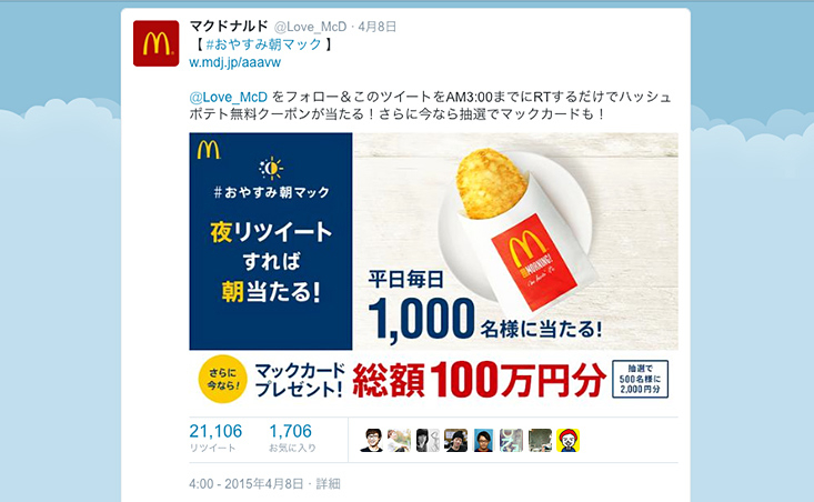マクドナルド「 おやすみ朝マック」 - AID-DCC Inc。
