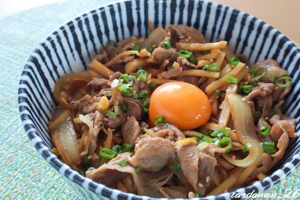 新玉ねぎの豚こま生姜焼き丼。