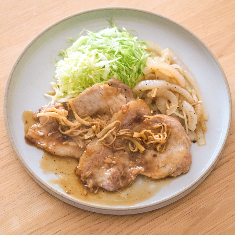 豚肉と玉ねぎの塩しょうが炒め。
