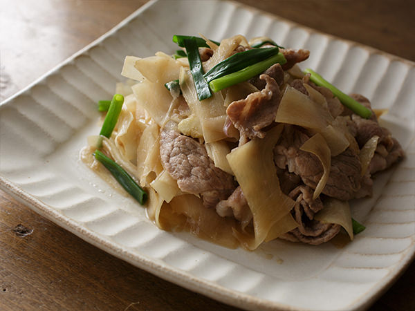 豚肉と新生姜の甘辛絡め。