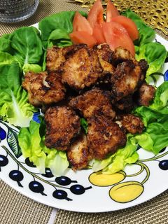 塩ヨーグルト漬け鶏胸肉のから揚げ。