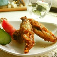 鶏手羽中の塩ヨーグルト醤油漬け唐揚げ♬。