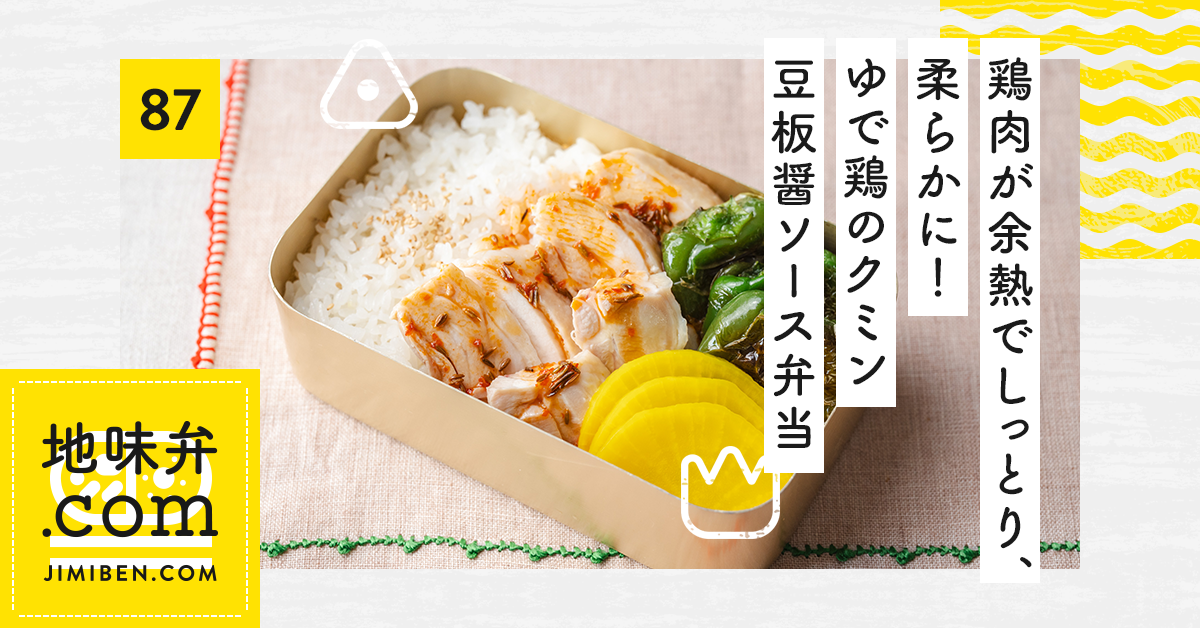 鶏肉が余熱でしっとり、柔らかに!ゆで鶏のクミン豆板醤ソース弁当地味弁レシピ一覧地味弁.com-今日も地味弁でいいじゃない!毎日続けられるお弁当生活-全農公式。