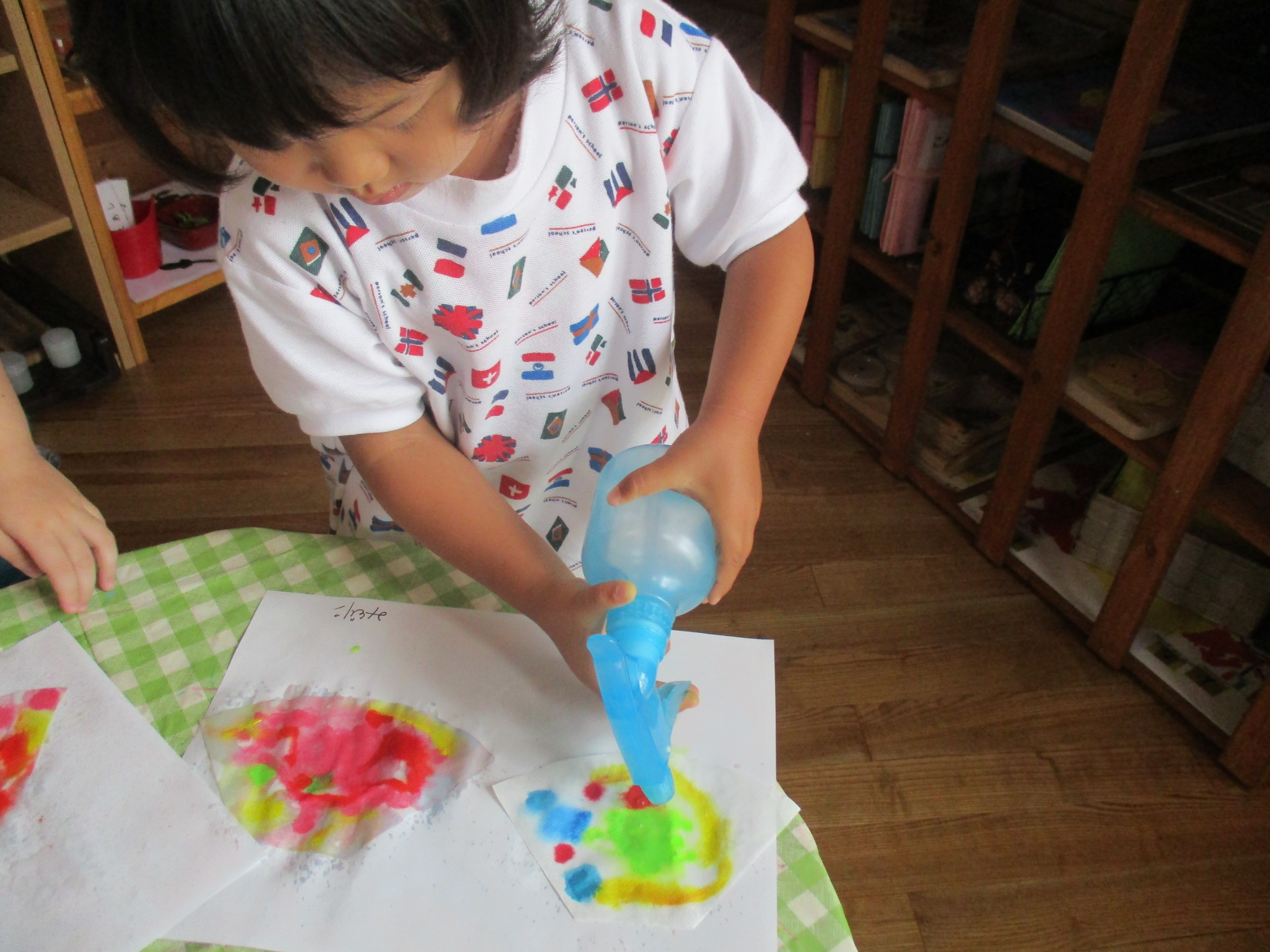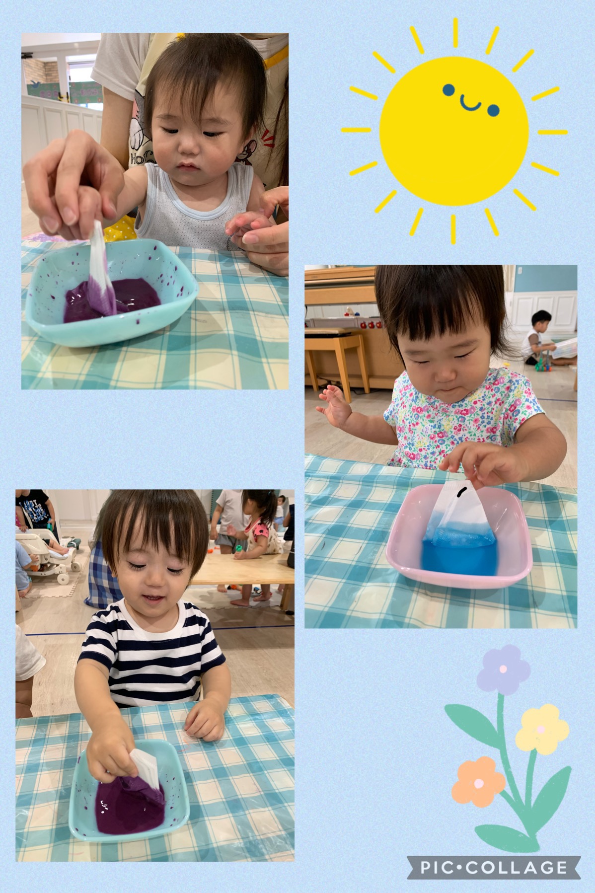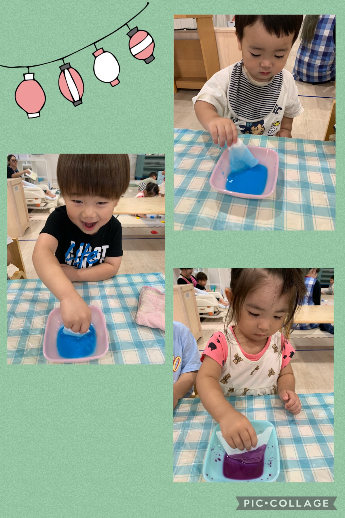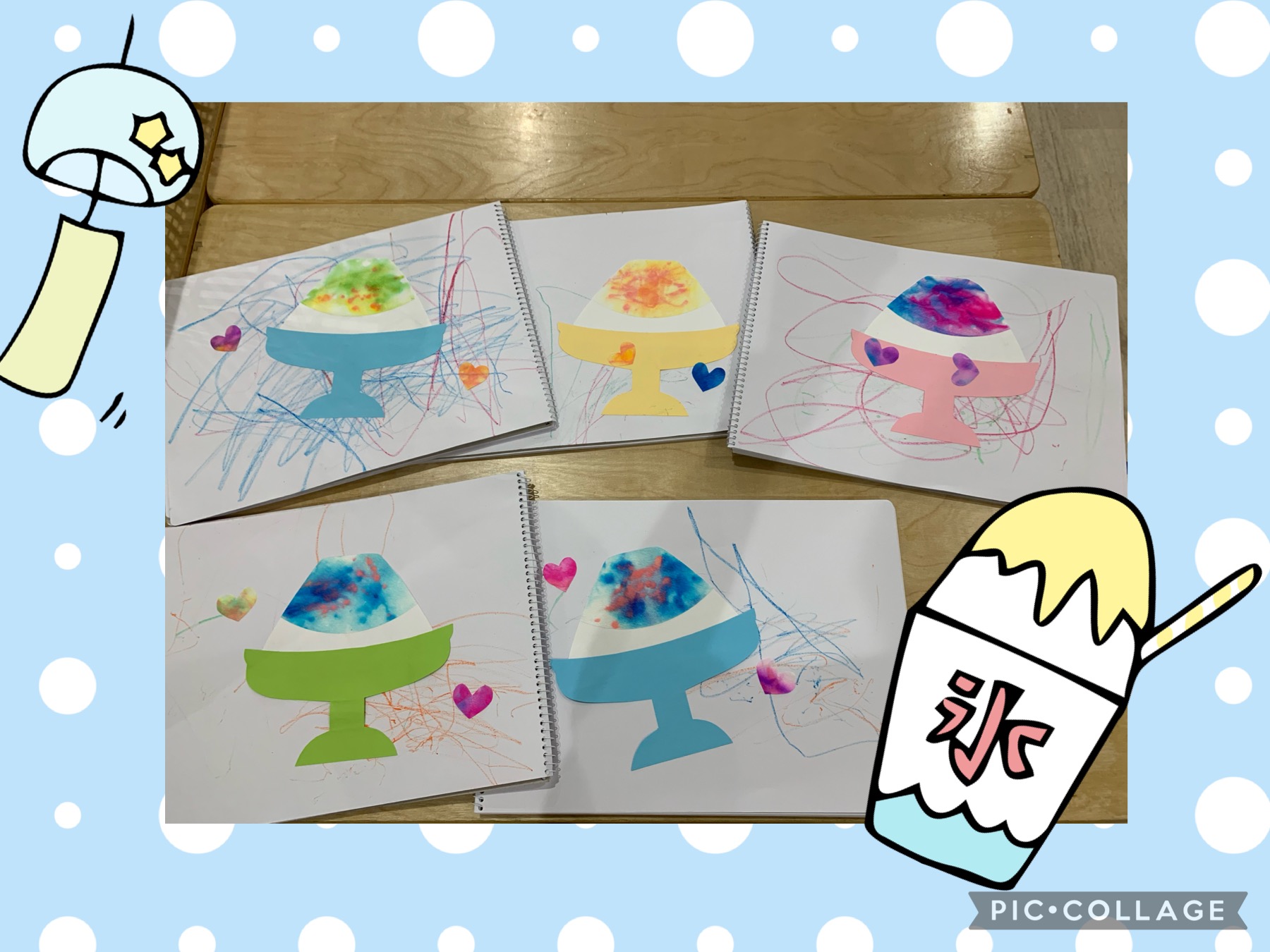 かき氷製作 にじみ絵 色水氷お絵描きひなたぼっこ保育園グループ。