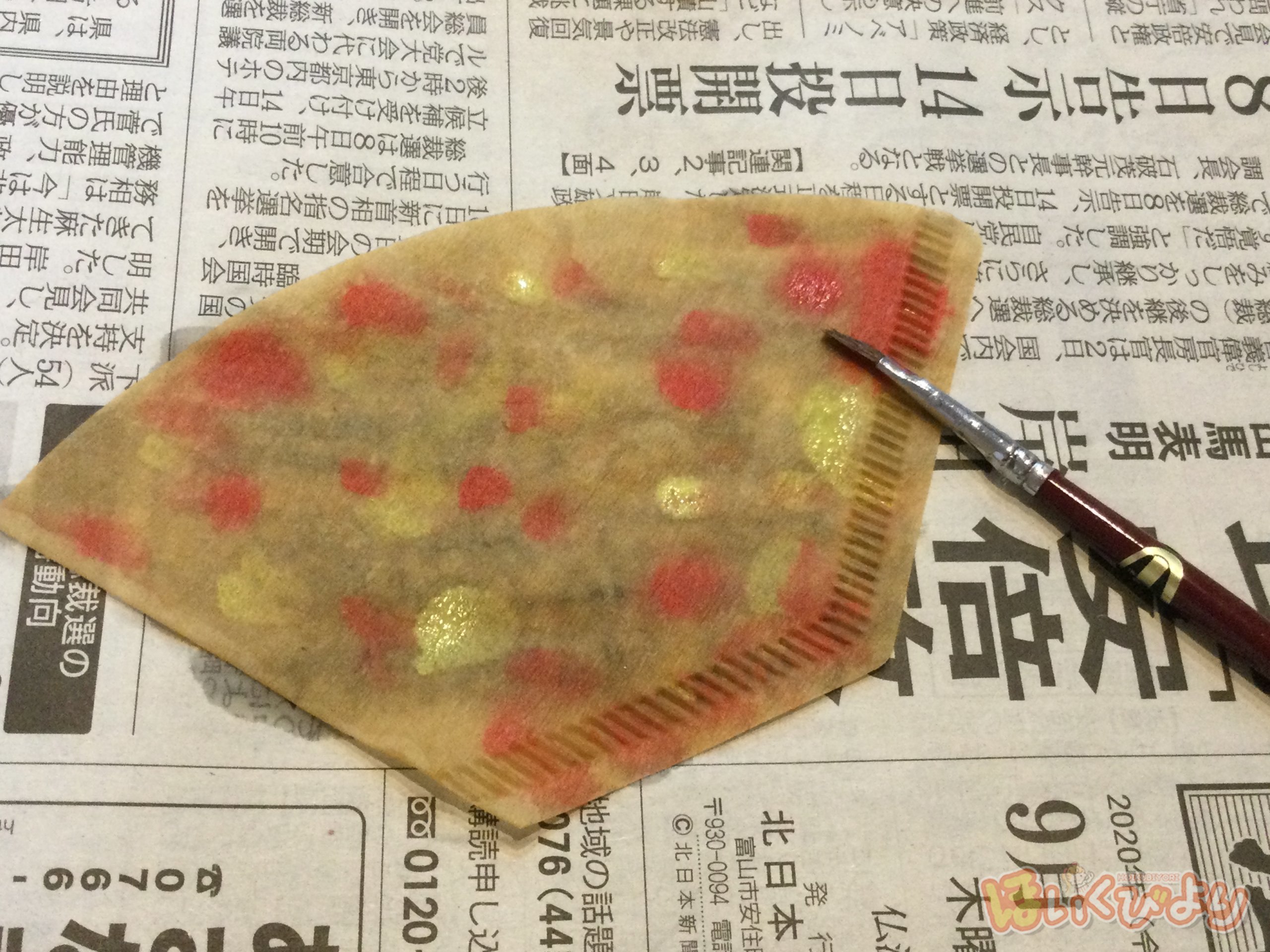 コーヒーフィルターと水性ペンと水で遊ぶ『にじみ絵』と、にじみ絵で楽しむ工作のアイデア。hinatani kimito。