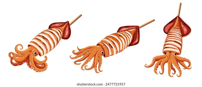 美しい漫画のイカの串焼きイラスト画像とPNGフリー素材透過の無料ダウンロード - Pngtree。