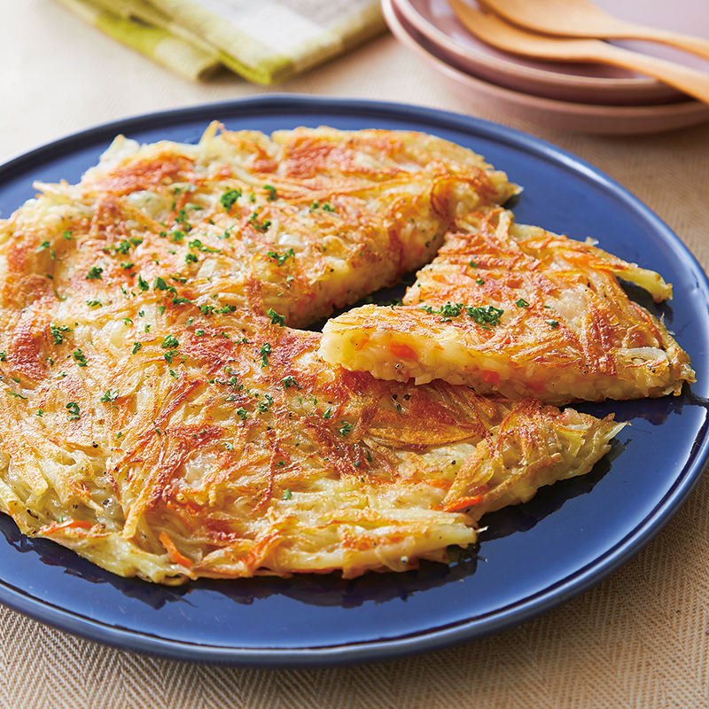おかずにもおつまみにも じゃがいもとにんじんのチーズガレットクラシル。