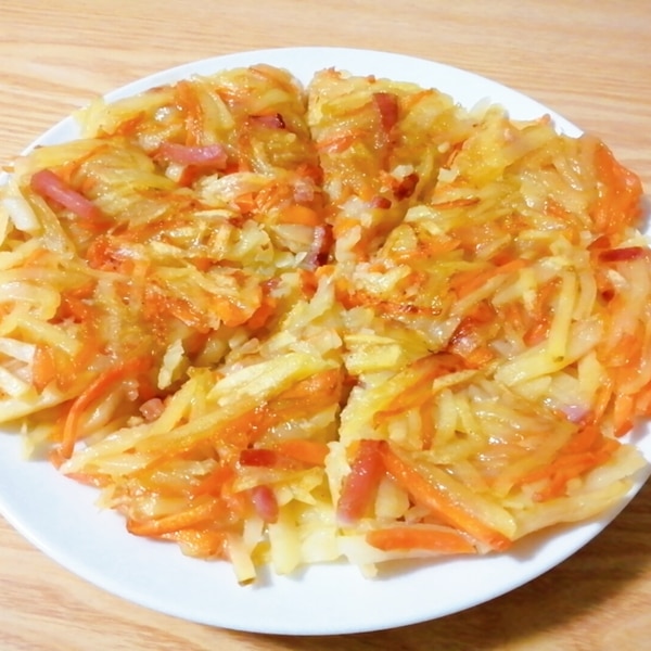 じゃがいもとにんじんのガレット 混ぜて焼くだけでめちゃ旨♪。