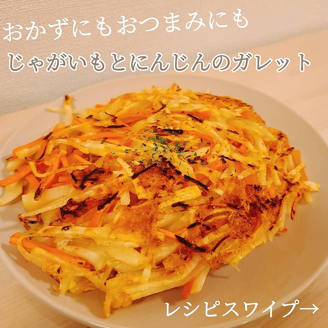 全農広報部 公式 日本の食を味わう on X: "にんじんたくさん食べたいなと思った時、にんじんしりしりもおすすめですが、にんじんガレットなんていかがですか?にんじんとじゃがいもをひたすら2~3㎝の千切りにしてピザ用チーズとともにフライパンに押し付けながら両面。