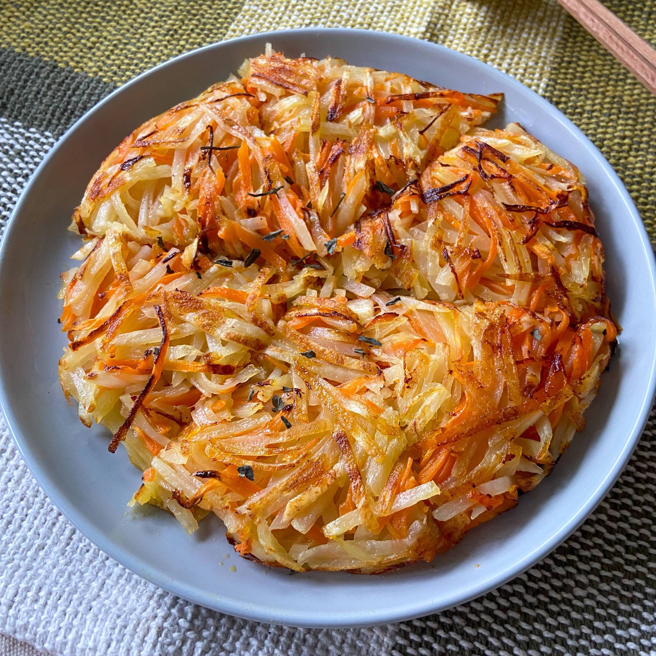 にんじんじゃがいもガレット ワンパン10分。
