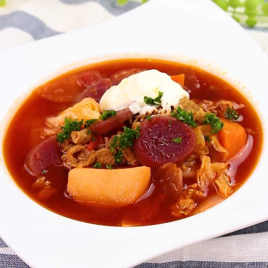 ラム肉とビーツで栄養満点!真っ赤な食べるスープ『ボルシチ』料理リレー レシピ集。