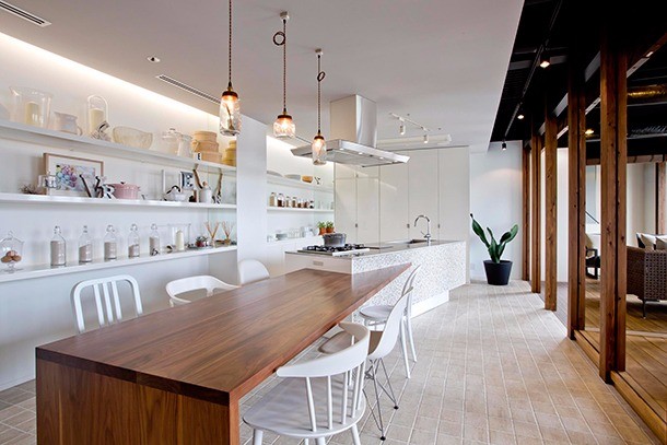 オープンキッチンのカウンターは見せる収納棚でおしゃれに - 北欧、暮らしの道具店。