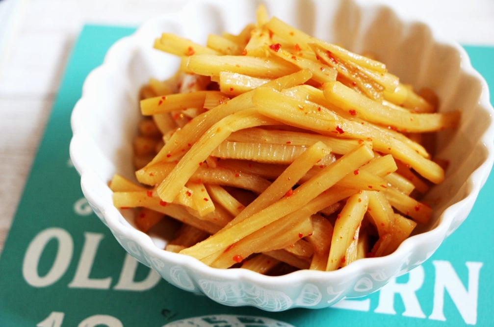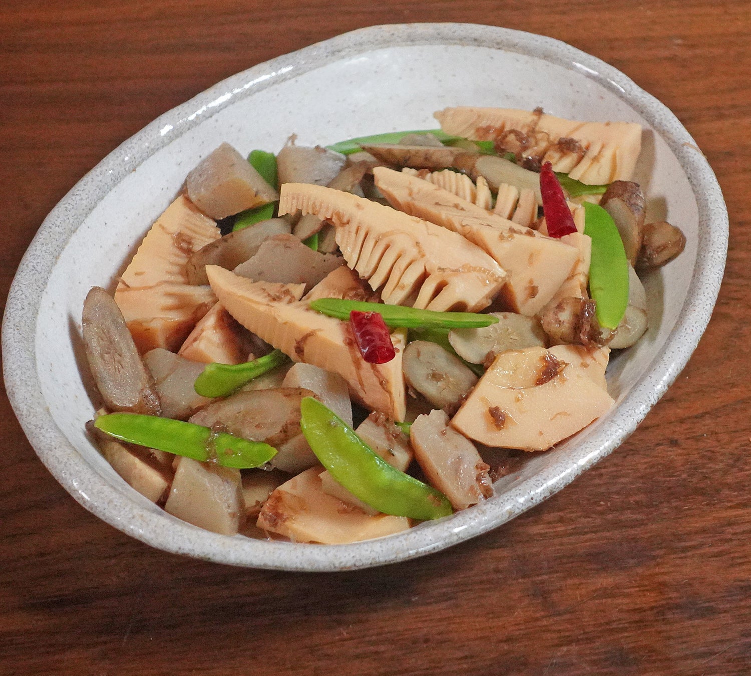 簡単!作り置き・おつまみ パパッと5分調理♪細切り竹の子のピリピリ炒め朝の1時間で ラクウマ 3食お家ごはん 〜腹ペコ3姉妹日記。