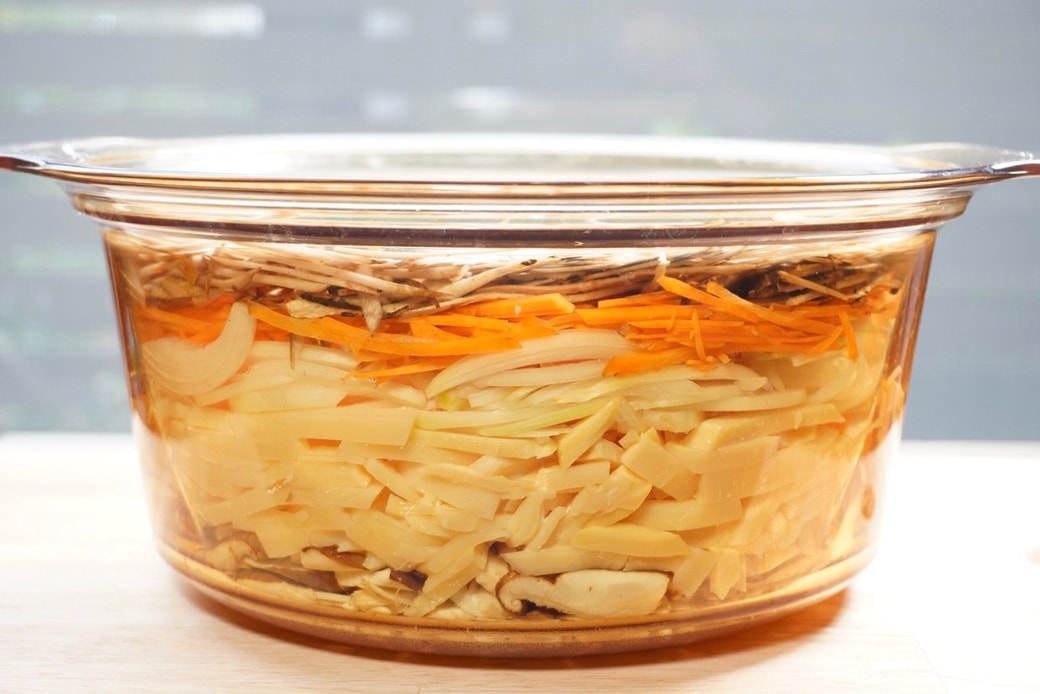絶品タケノコ作り置きレシピ 「シャキシャキ食感を活かす」の重ね煮。