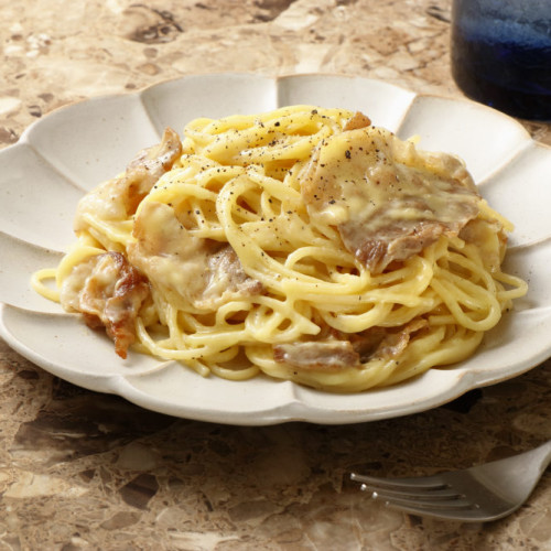 国産豚バラ切落し* 生クリームなしで作る!豚ボナーラ < ニッシン・グルメビーフ株式会社食肉生産加工から販売一般・業務用・外食・学校給食。