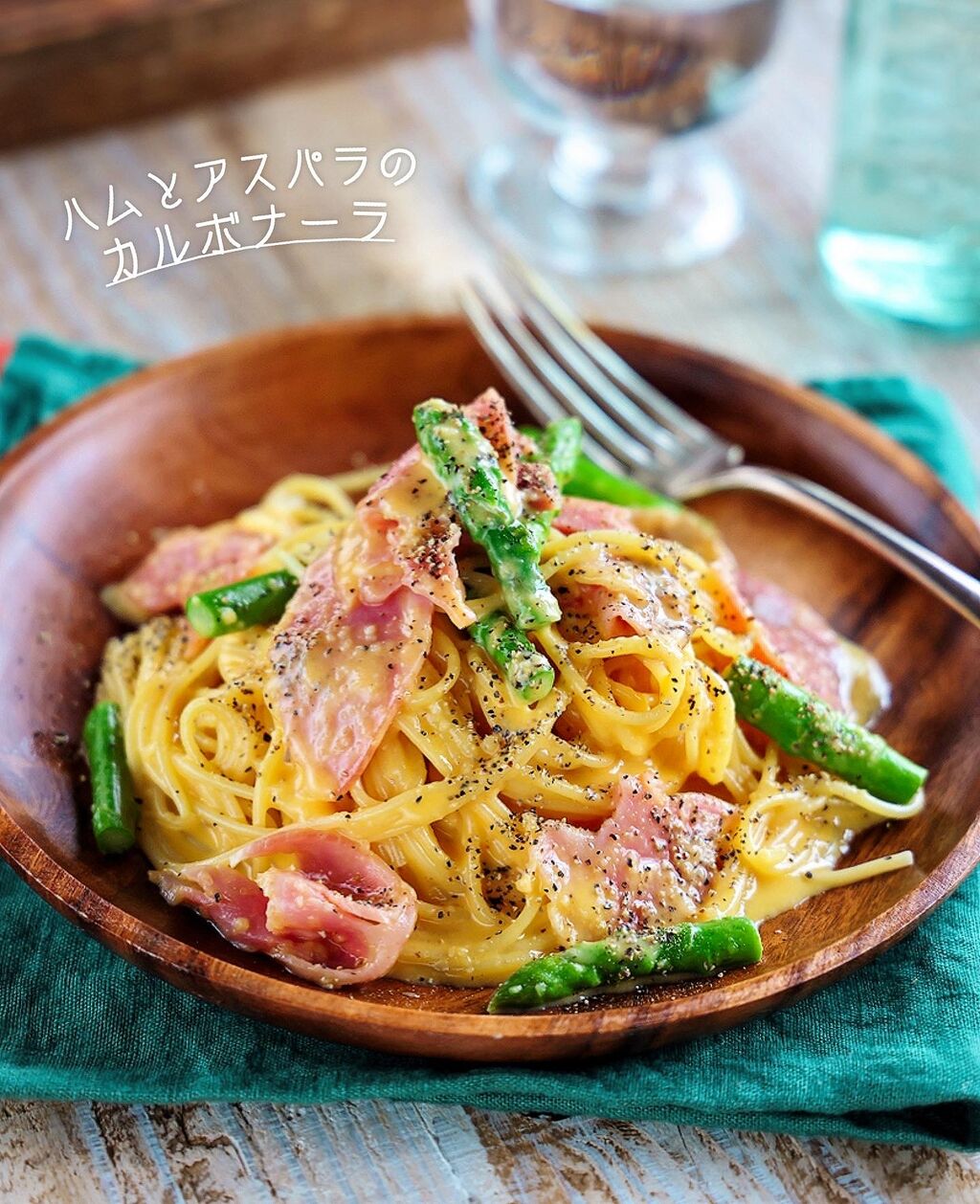 ♡和えるだけ♡ハムとアスパラのカルボナーラ♡簡単レシピ 生クリームなし 全卵 パスタ: Mizukiオフィシャルブログ「奇跡のキッチン」Powered by ライブドアブログ。