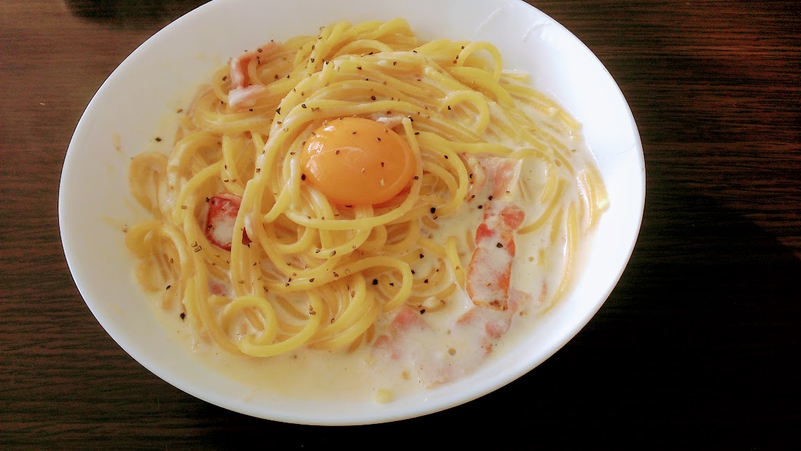 ワンパン レシピ 難しくない 生クリームなし 全卵使用 しっかり美味しいカルボナーラの作り方g-time 自炊ログ。