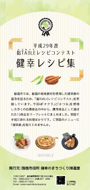 平成29年度「指TABLEレシピコンテスト」健幸レシピ集が完成しました! - 健幸・協働のまちづくり課。