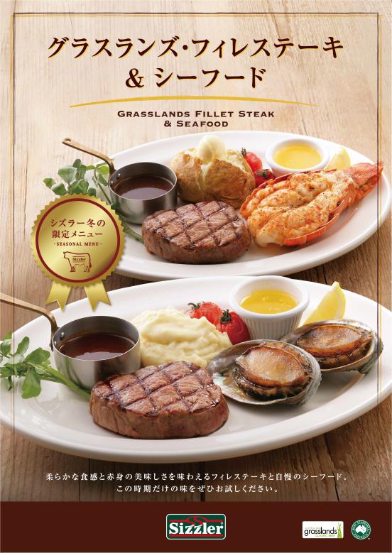 こだわりのお肉とシーフードを堪能!シズラー「グラスランズ・ビーフ フィレステーキ&シーフード」。