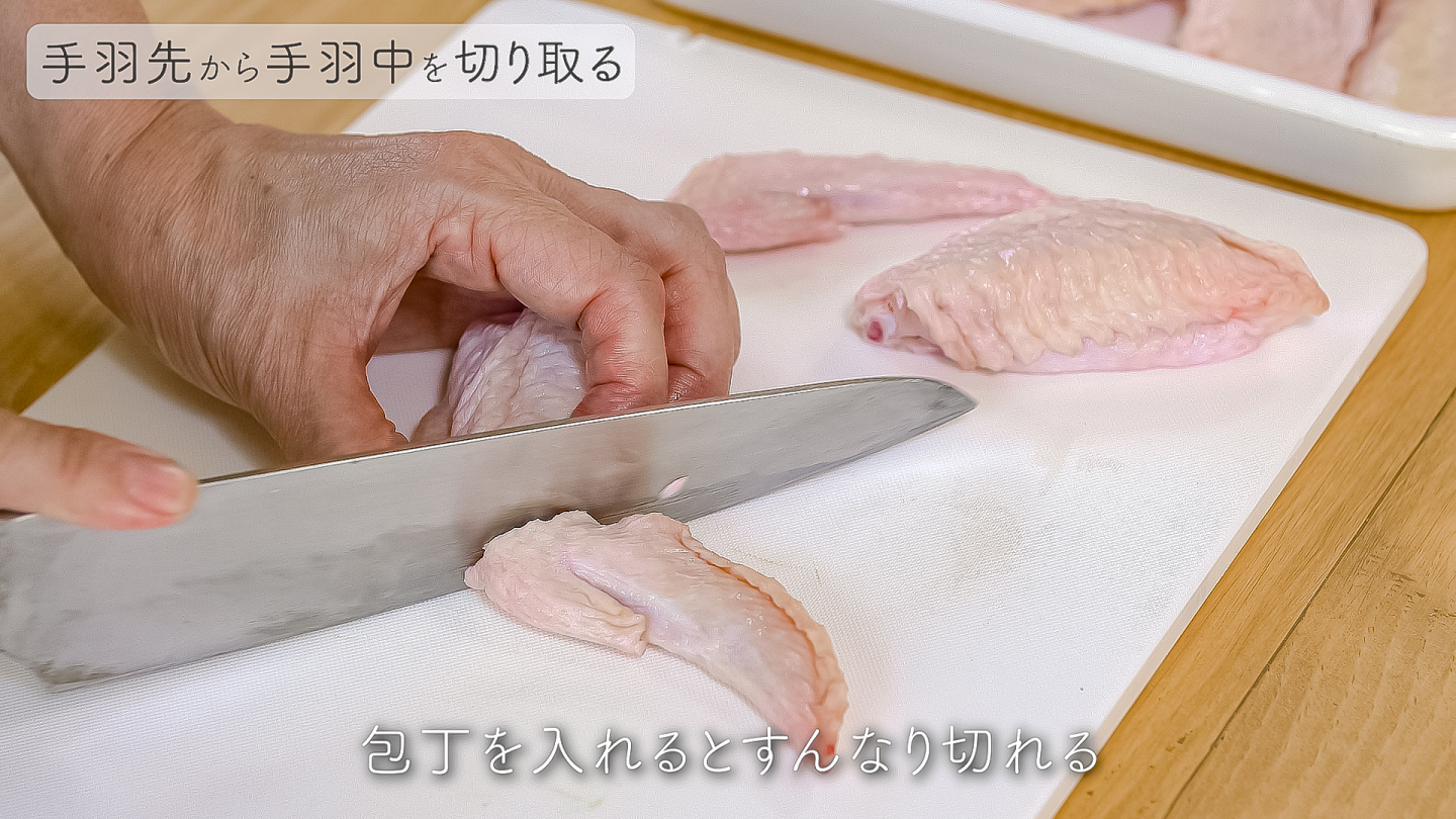 手羽先のさばき方。食べやすく切る!手羽中と先っぽを切り分ける方法。やまでら くみこ のレシピ。
