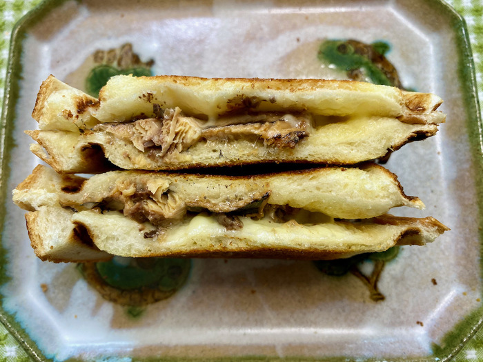 釧路の味付けいわし味付缶とチーズのホットサンド。