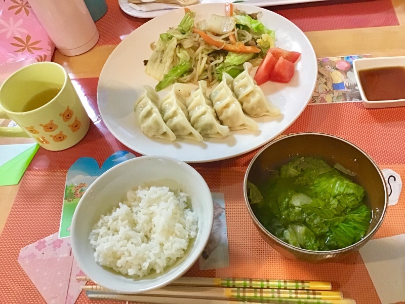 あじさい荘 夕食 餃子 野菜炒め : 今日の献立。