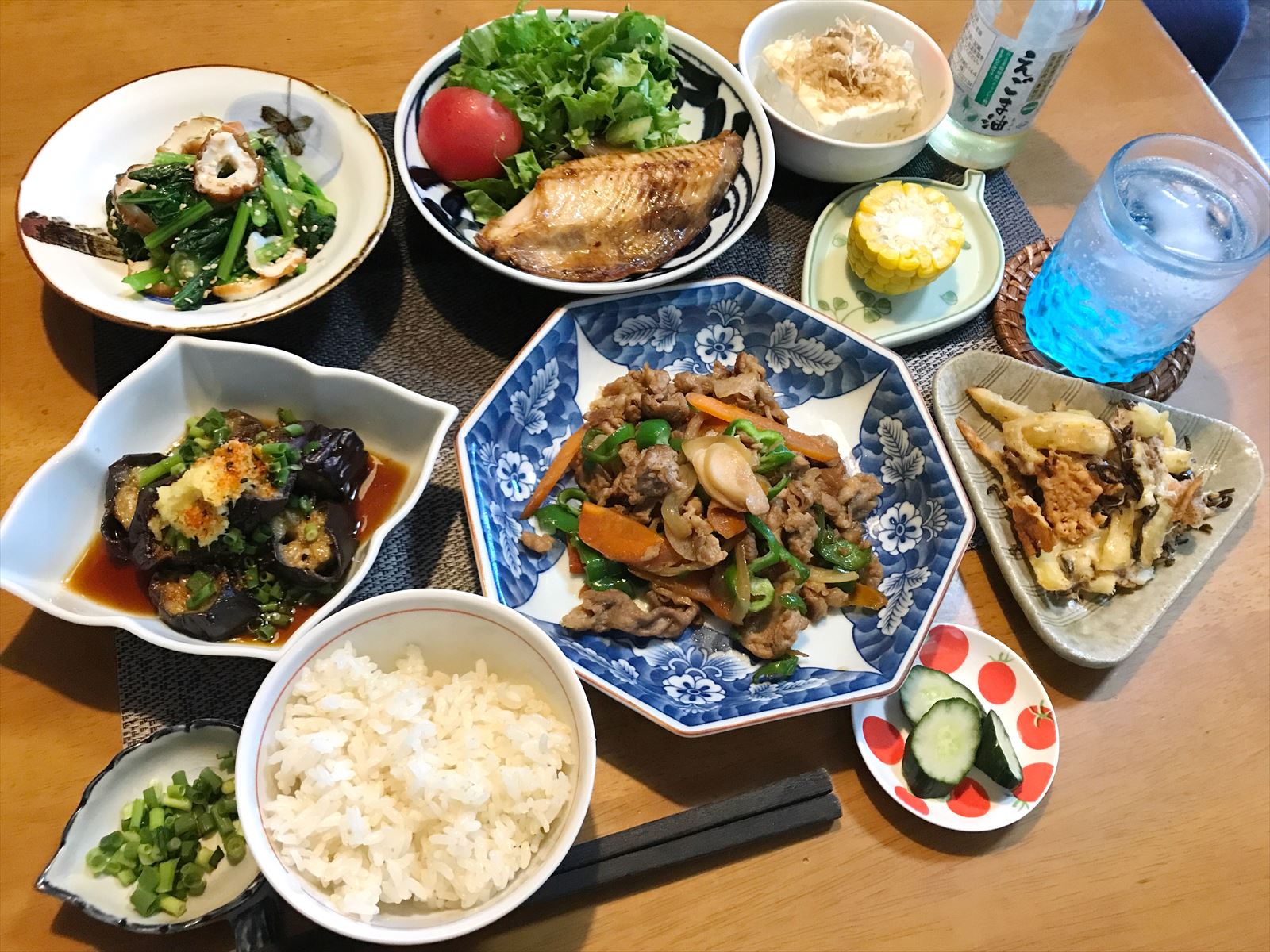 野菜炒めメインの献立 2018年7月22日の朝ごはん我が家の献立の記録、糖尿病で食事制限、リウマチの記録。