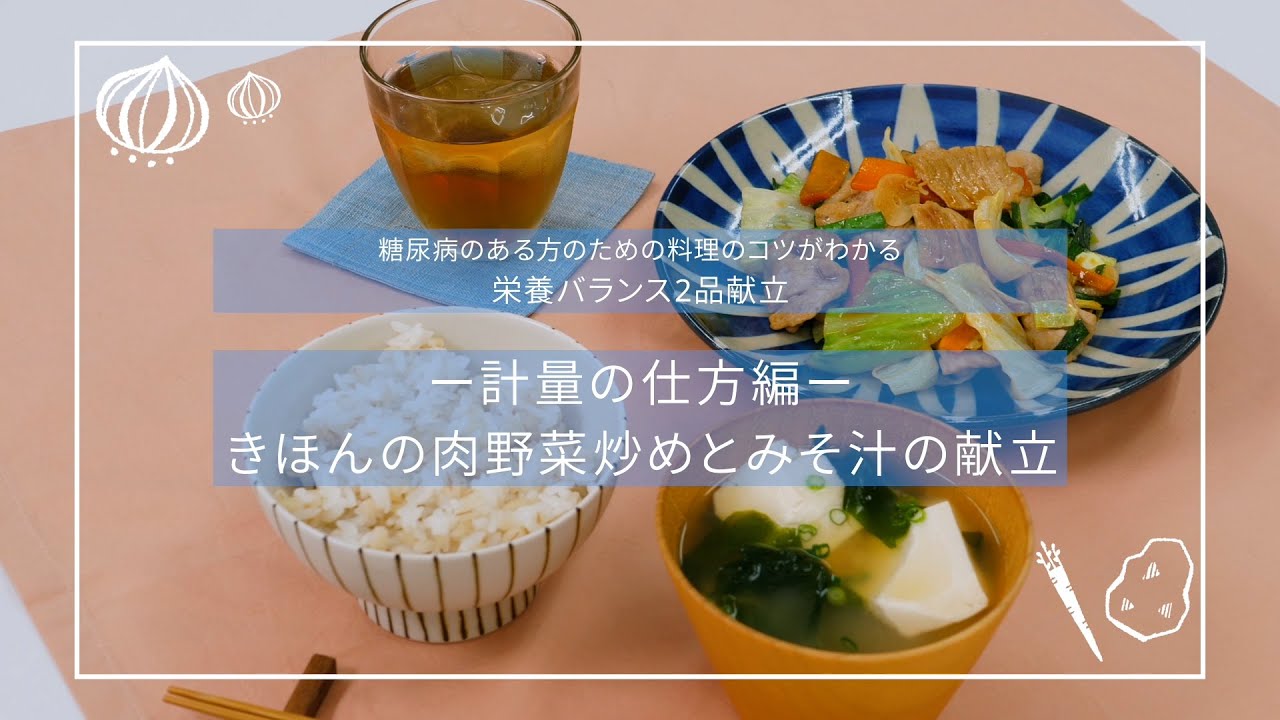 簡単バランスごはん 夕食例 肉野菜炒め定食管理栄養士のレシピまつもと薬局。