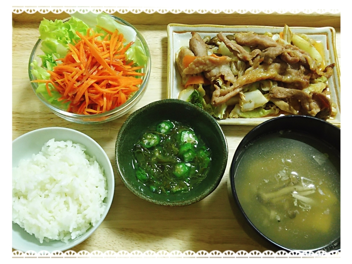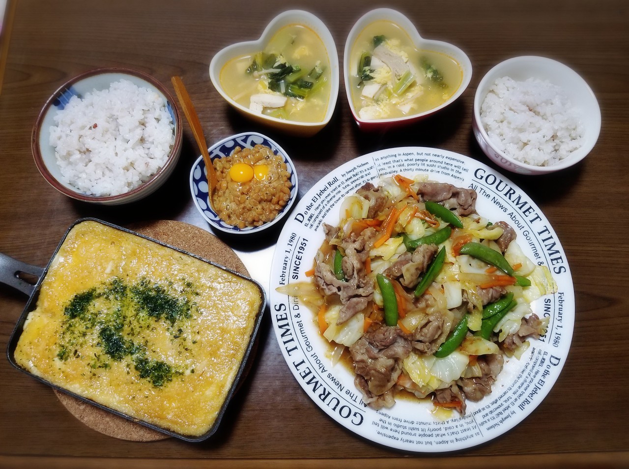 肉野菜炒めの献立〜2人飯 : 美味しいごはん。