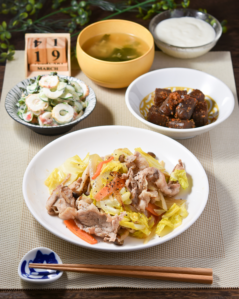 夕飯3品を15分で同時調理!栄養バランスのとれた豚肉野菜炒め定食のレシピ - たべぷろ。